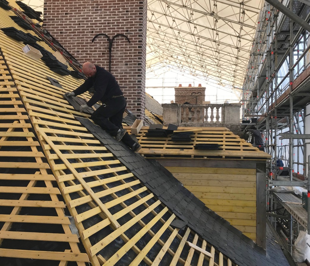 Restructuration du château (restauration de la toiture, aménagement des décors et des intérieurs)